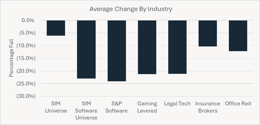 Figure 1: Share price change of software affected industries during the software sell-off, January & February 2026