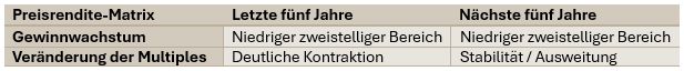 Tabelle 2: Preisrendite-Matrix