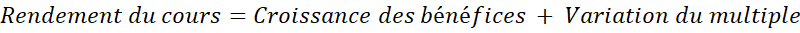 Le principe fondamental de l’investissement « Quality Growth » repose sur l’idée qu’à long terme, le cours d’une action suit l’évolution des bénéfices de l’entreprise (Focusing on the Fundamentals). Nous avons reçu de nombreuses questions sur les raisons pour lesquelles les cours des actions de nos sociétés n’ont pas convergé vers leurs bénéfices au cours des cinq dernières années, une période que l’on pourrait pourtant considérer comme suffisamment longue pour observer cette dynamique. Pour comprendre pourquoi ce décalage peut persister, il est utile de décomposer les moteurs de la performance: