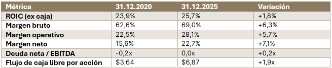 Si el precio de una acción refleja en última instancia el valor actual de sus flujos de caja futuros, y estos continúan creciendo, la paciencia se convierte en nuestra mayor virtud mientras esperamos a que el ciclo cambie. En este contexto, precios más bajos no son una señal para retirarse, sino un reflejo de unas mejores perspectivas de rentabilidad. Y cuando empresas de alta calidad están disponibles con descuentos significativos, la situación no difiere de la del 26 de diciembre. La única cuestión es si se tiene la convicción suficiente para hacer cola.